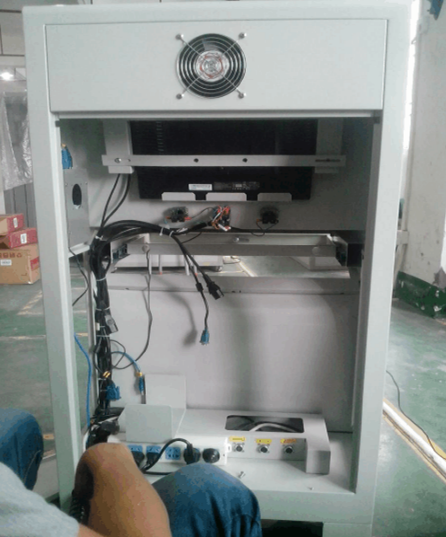 4.然后將工控機裝入操作臺中,并按照線上的標簽將其都接到相對應的位置,裝完后將工控機用螺絲固定好,見下圖